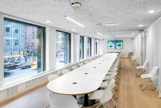 In keeping with The Durst Organization’s commitment to providing tenants with premier office properties, 675 Third Avenue recently underwent a major window replacement as part of its capital improvement program. The new windows improve tenant comfort and significantly increase the energy efficiency of the building envelope. Original perimeter induction units were also replaced to provide further efficiency and controllability. Additional renovations include a new public plaza with zinc green wall and landscaped planters, updated lobby, and renovated elevator cabs.