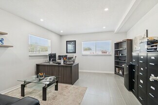 The site is secured with perimeter fencing, a remote-access gated entry, and additional gated points of ingress and egress to support efficient circulation and operational flexibility. On-site improvements total approximately 3,411 SF and include a 1,600 SF warehouse building equipped with two 14-foot overhead doors, suitable for truck service, repair, or other compatible commercial activities. This building includes approximately 400 SF of office space to support operational needs. A separate 1,411 SF standalone office building has been updated with new electrical, HVAC, drywall, paint, flooring, and lighting and is turnkey, providing a professional administrative component.