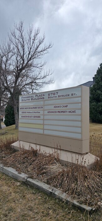 6767 South Spruce Street, Centennial CO 80112 office building is an attractive, suburban, multi-tenant, two story office building located on the Arapahoe Corridor just south of the Denver Tech Center, immediately off the I-25 and Arapahoe interchange. Providing easy access, strong visibility and signage just off of Arapahoe Road with ample parking. Occupants appreciate quick and easy access to DTC and Downtown Denver without having to pay the higher price of those markets. 2 minutes to DTC, 15 minutes to Cherry Creek North and 20 minutes to Downtown Denver, Tenants enjoy the nearby amenities which include multiple grocery stores, large shopping centers, a multitude of restaurants, coffee shops, bars and entertainment venues, health clubs and shopping, surrounded by significant residential neighborhoods and class A apartments.