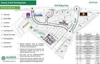 Hard corner site in Grassy Creek development, anchored by Food City grocery store opened March 2021. Food City (KVAT Food Stores) is the 33rd largest grocer in the US with 127 stores and 16,000+ employees across Tennessee, Georgia, Virginia and Kentucky, and sales exceeding $2B.