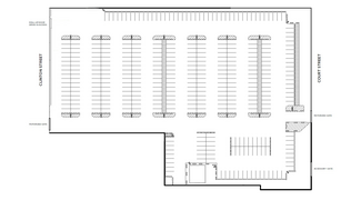 The property features 605 linear feet of combined, unobstructed frontage with multiple points of access including four (4) gates — two (2) on Court Street and two (2) on Clinton Street.