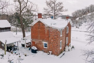 Parcel #1: 33.2 acres with home & buildings. 838’ frontage on Lloydsville Bannock Rd. with a beautiful brick two story historical farmhouse. Home was built in 1850 and has approx. 1,784 sq. ft. Main level has updated oak kitchen with Corian countertops, island breakfast bar, brick accent walls and country charm. Off the kitchen is the laundry room, updated full bath, formal dining room and living room with brick fireplace. Second level has three bedrooms and updated full bath. The full walkout basement has a family room with wood burner, storage utility room, modern oil furnace w/ A/C, 150-amp elec. breakers, whole house LP Generac generator, and septic. The farm is on county water service. There is a 30’ x 40’ bank barn, milk house, several storage sheds, 40’ x 120’ equipment building (dirt floor) and 40’ x 80’ shop building with concrete floors.