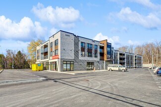 The property is a single-unit commercial condominium located at 689 Boul. St-Jean-Baptiste in Mercier, Quebec. It was constructed in 2024 and offers approximately 2,400 square feet of space. The site is situated along a primary roadway within the city and includes on-site parking. Utilities include municipal water and sewer services, and the heating system is electric. The zoning designation is commercial.