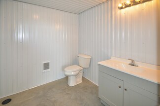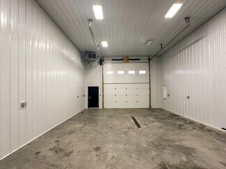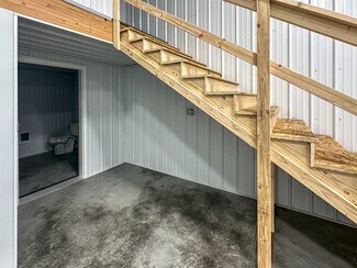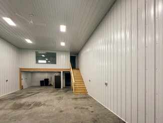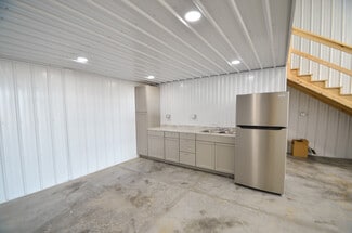 48'x56' building with divider wall making two 24'x56' units - each with a bathroom, kitchen area & mezzanine/office. 16' walls & 29 gauge metal exterior. 2 Bollards installed on each side of garage doors (4 total). 18"x18" windows, 36" Man doors, 14'x14' insulated garage doors with Jack Shaft Operator. 10'x10' header installed for future door on right side.