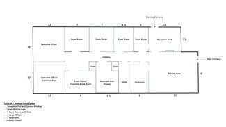 Norton Commercial & Acreage Group is proud to present this medical office suite for lease in the rapid growing market of Dahlonega, GA. The subject space is 1,550 SF and features seven offices, five of which can be considered exam rooms with sinks, and the remaining could be a break room or executive office for a provider. The space also has a reception area, two entrances, two restrooms, and a large waiting area. Dahlonega, GA is a fast growing market that is home to the University of North Georgia and a new Northeast Georgia Medical Center on five minutes from the subject property. This space is perfect for most medical users looking for a satellite location or any other professional user looking for a new location!