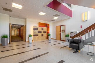 Key property features include ample surface parking, up to 13-foot ceiling heights, a loading dock, and passenger elevator service. Responsive, professional property management is also on hand to meet all tenant needs. Fully built-out, second-floor space is available at 900 Technology Park Drive. Tenants experience an efficiently designed work environment that receives plentiful natural light throughout the day.