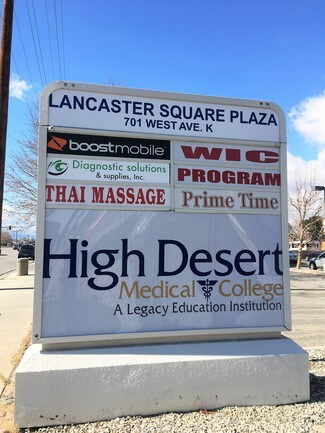 Multiple Units for lease in sizable community shopping center on busy Avenue K in prime Lancaster. Approx. 960 - 1,770 SQFT available. At full size, the space is ideal for a vocational training facility or daycare center. The shop space is suitable for a variety of retail uses. The well-patronized center features high street visibility, prominent monument signage, ample parking in a large onsite lot, and a diverse tenant mix, including WIC, Boost Mobile, High Desert Medical College + more! Situated at the intersection of Avenue K + Gadsden Avenue, the site is adjacent to a bevy of A+ retailers, including Lowe's Home Improvement, Target, Starbucks + more.