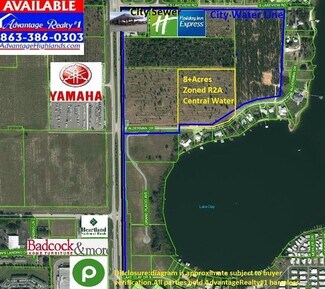 16.59 Acres with 613 feet of US 27 Frontage. Property has access to Central City water and sewer. Location is perfect as it's withing minutes of all the Town of Lake Placid. Zoned C1/R2 for commercial or residential development front half is zoned with US 27 frontage & Medium turn for easy franchise developments with real half (8+- acres) zoned multi-family for townhomes viewing down on the beautiful Lake Clay.