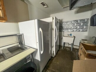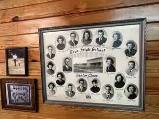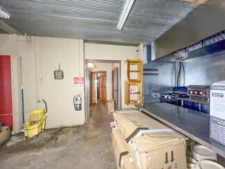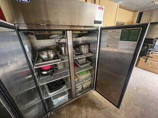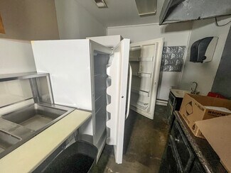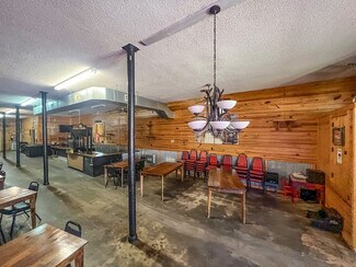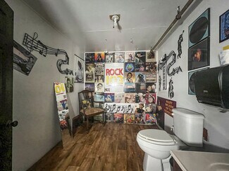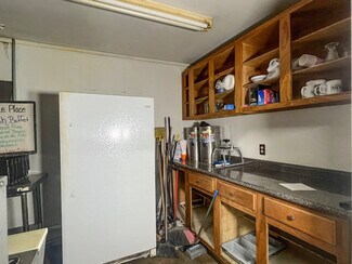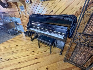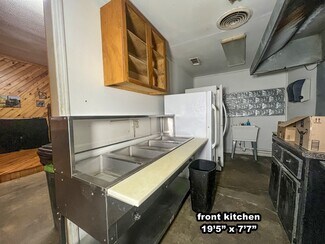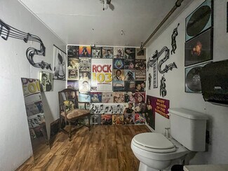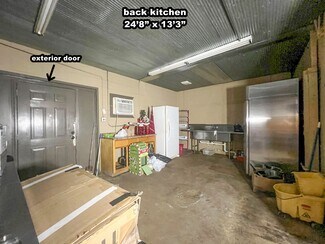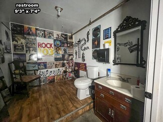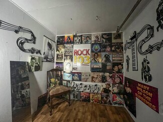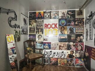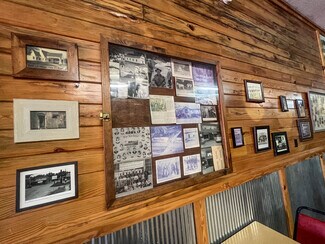 The main room/ dining area is a spacious 1,500 square feet and features local history decor, plenty of seating, handmade wooden tables, a twenty-foot bar, and a corner wooden platform stage and piano in place for live music or karaoke. There are two commercial kitchens, one large and one small, and an office with storage, filing cabinets, security camera monitors. and more. Even the restroom is worth visiting with its vintage album-covered back wall with a signed Rock 103 focal point. Everything you need is already in place from the commercial griddle and steam tables to the side-by-side freezer, so you'd be ready to go on closing day!