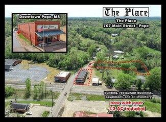 If you're looking for a turn-key restaurant with a great little destination location, this is it. This iconic building located in downtown Pope, Mississippi is known as "The Place" and is loved by all who've enjoyed it over the years. The family-owned business has everything needed for new owners to get started right away. All equipment, appliances, furniture, decor, and inventory are included.