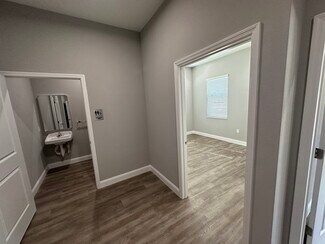 Step into a pristine, never-before-occupied workspace with this brand-new 1,500 SF professional suite at 708 Cactus Ridge Circle. Featuring impressive 10-to-11-foot vaulted ceilings and premium luxury vinyl plank flooring throughout, this turnkey space feels remarkably open, bright, and modern. The highly efficient floor plan is move-in ready for traditional office users, boasting five private offices, a welcoming lobby with a built-in administrative desk, a kitchenette, an ADA-compliant restroom, and a dedicated private entrance for staff.