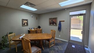 Excellent Medical and Commercial office space For Lease. Located along N. Montezuma St. offering great road frontage & building signage that is .80 miles north of downtown Prescott within the Montezuma Plaza professional complex. Formerly occupied by Nation’s First Financial, Suite A is available for immediate occupancy and is perfect for any end user or medical provider. This office is +/-2,061 sf and is being offered For Lease at $18.00/sf/yr plus $4.22/sf/yr NNN’s. Suite A is adjacent to Weary Chiropractic and consists of 4 private offices, a conference room, waiting and reception area, 2 ADA restrooms, a kitchenette and 9-foot ceilings. There is a separate entrance that accesses an 875-sf portion of this suite and contains a large open workspace and the 4th private office which can be leased out separately with shared access to the two restrooms and kitchenette. This is a very well-located and popular commercial center offering great proximity to both the central downtown business district and Dignity Health’s west campus. Montezuma Plaza other major tenants include Advance Medical, Advance Chiropractic, Farmers Insurance, Supply Monkey, Skin Restoration and Salon Reale. There is ample on-site parking which is shared in-common with the other 6 professional office buildings within this complex.