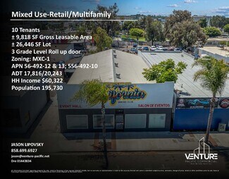 Prime Mixed-Use Retail/Multifamily/Auto Investment Opportunity. Exceptional opportunity to acquire a stabilized mixed-use retail and multifamily asset featuring 10 tenants and a projected 6.58% cap rate. The property offers approximately ±9,818 square feet of gross leasable area situated on a generous ±26,446 square foot lot, providing strong in-place income with future upside potential. The building includes two grade-level roll-up doors, allowing for flexible retail, service, or light industrial use and enhancing tenant versatility. The diverse tenant mix supports steady cash flow while mitigating vacancy risk. Zoned MXC-1, the property benefits from mixed-use commercial flexibility, supporting a variety of retail, residential, and service-oriented uses ideal for investors seeking both stability and long-term redevelopment potential. This is a rare opportunity to secure a well-located, income-producing mixed-use asset with solid returns and value-add potential.