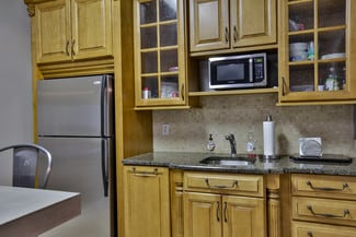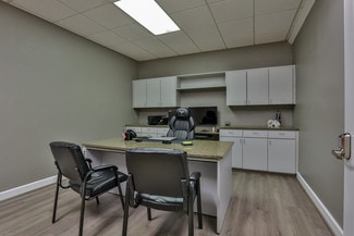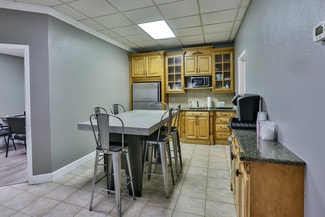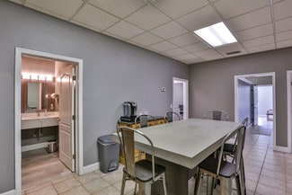 - Features a reception area, four private offices, a break room, a conference room, and two bathrooms