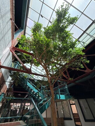 711 N Court St is a three- story commercial/ office building, located in downtown Visalia, near shopping, dining, and public transit. The subject properties include four parcels that are all situated in the same block and are zoned C-MU by the City of Visalia as part of a commercial mixed-use zone. Visalia has two mixed use zones and together they are intended to encourage a wide variety of land uses that create vibrant, walkable environments. Parcels Two and Three are improved with a multi-tenant office building and parking lot, while Parcels One and Four are vacant and could support additional buildings. The building was renovated from the old historic Rainbow Bread factory. It features old relics that were tastefully incorporated into the renovation. A large atrium area graces the entry and lobby allowing amply light and large specimen indoor plants and trees.