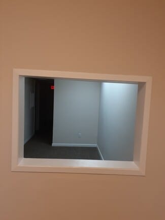 • sink, storage, and countertop in large meeting/treatment room.