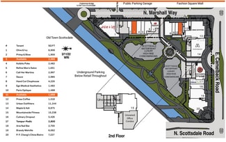 Preeminent 1.1 million square foot mixed-use development at one of the most visited intersections in the Phoenix MSA featuring luxury residential, boutique office, upscale retail, and destination restaurants. The Scottsdale Waterfront plaza is located in the heart of the city, an international travel destination in Scottsdale's shopping district. This trade area boasts over $1 billion in annual retail sales. This high-profile trade area's tenants include Apple (flagship store location), Nordstrom, Neiman Marcus, Map & Ash, Nobu, Toca Madera, Tesla, Saint Laurent, Christian Dior, Alo Yoga, and more.