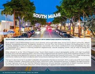 The Crossroads building is a two-story trophy, commercial building of 34,901 sq. ft. with retail on the first floor and office on the second floor. It is located at (“Main & Main”) the southwest corner of Red Road and Sunset Drive, in busy South Miami, Florida, only a couple blocks from the University of Miami. High Traffic count of over 77,000 cars daily; heavy day time foot traffic, with a walk score of 98 out of 100: Walker’s Paradise!