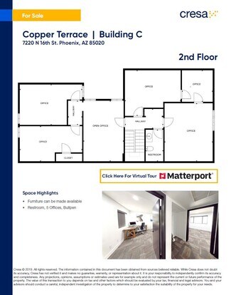 2 Story Modern office condo conveniently located with easy access to SR-51. The second-floor sports 5 private offices, and a Bullpen and a restroom. Funiture can be made available to perspective occupiers. 5/1000 Parking ration