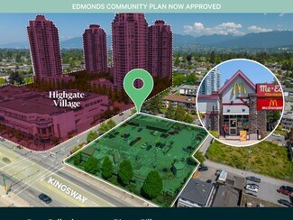 Currently fully leased to McDonald’s and Me-n-Ed’s Pizza Parlor, the property provides stable holding income during the rezoning process. Its location along Kingsway ensures exceptional visibility and access to a wide range of amenities, including grocery stores, retail shops, and restaurants. The site is only a 13-minute walk to Edmonds SkyTrain Station (Expo Line), enhancing connectivity to Metro Vancouver.