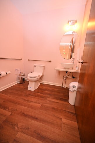 Inside, the layout includes six private rooms—ideal for offices, exam rooms, or consulting spaces, along with one bathroom and a dedicated laundry room. Four of the rooms have elegant electric fireplaces built into the wall the convey with the sale of the property. The unit is fully wheelchair accessible and benefits from four separate points of egress, including: