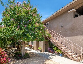 This offering is one component of a larger, single-parcel triplex portfolio that includes a classic 1924 two-bedroom, one-bathroom home on an adjacent parcel. While the owner would prefer to sell the properties together as a combined offering of approximately 10,455 total square feet on two adjacent parcels, this duplex is available separately. This offers flexibility for an owner-user seeking income or an astute investor looking for a high-quality asset with significant growth potential. Each contemporary duplex unit features an attached two-car garage, and both units are equipped with kitchens, individual AC/heating, window coverings, and washer/dryer hook-ups. The downstairs unit has a spacious, landscaped front yard, while the upstairs unit boasts a large private patio. The property’s inviting outdoor spaces are complemented by mature landscaping and vibrant palm trees.