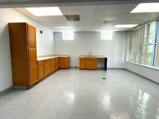 • Features a lobby/reception area, several private offices, large open work areas, an elevator, a break room, and ample storage
