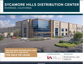 For sale or lease. Sycamore Hills Distribution Center consists of two buildings 1304 East Alessandro measuring 400,000 SF and 7267 Barton Street measuring 203,100 SF. See the attached brochure for building specifications that include ESFR sprinklers (K-25 Heads), 2,000 amp, 277/480 Volt Meter Section (4,000 AMP UGPS). This is a Rockefller Group development. Corporate Neighbors include PEPSI, Smart & Final, Instant Foods, Ralphs and more.