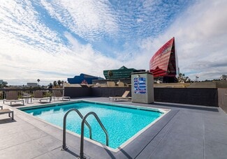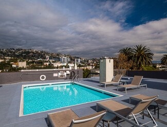 • Rooftop pool and spa with unobstructed views of the Hollywood Hills, Pacific Design Center & LA skyline