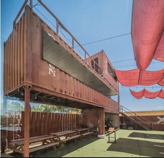 Top of the line bar/restaurant on the corner of North Loop and Hawkins. This building features lots of unique construction details, a full kitchen, large bathrooms, an outdoor entertainment area with artificial turf and shaded canopies. The owner is willing to sell all equipment. The outdoor area is enclosed with corrugated metal and has a second floor.