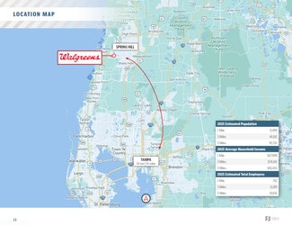 SRS Real Estate Partners-SOFLO LLC National Net Lease Group is pleased to offer the opportunity to acquire the fee simple interest (land & building ownership) in an absolute NNN leased, drive-thru pharmacy equipped, freestanding, Walgreens investment property located in Spring Hill, Florida (Tampa MSA). The tenant has 8+ years remaining on the initial term of the lease with 6 (5-year) options to extend, demonstrating their commitment to the site. The lease features 5% rental increases every 5 years throughout the initial term and at the beginning of each option period, growing NOI and hedging against inflation. The lease is absolute NNN with zero landlord responsibilities making it an ideal, management-free investment opportunity for a passive investor. Headquartered in Deerfield, IL, Walgreens operates over 9,200 stores across all 50 states and was recently included in FORTUNE’s 2020 list of the World’s Most Admired Companies for the 27th consecutive year.