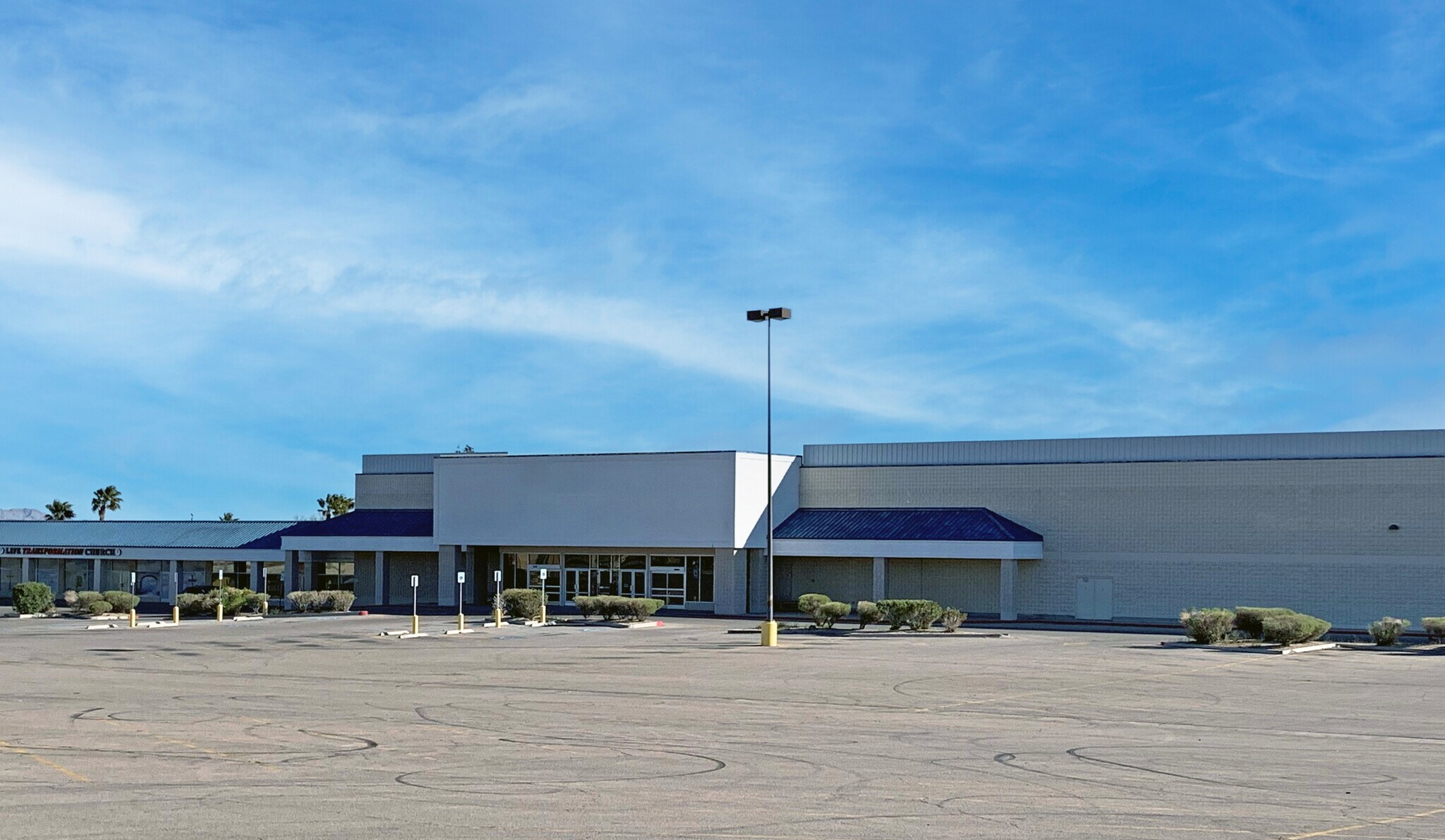 FOR SALE OR LEASE Racetrack Plaza is a four tenant, +/- 119,748 SF commercial property that is situated on ±8.62 Acres with visibility of Boulder Highway. The +/- 109,748 SF Anchor Box is available for lease and was previously occupied by Kmart. This space offers two (2) Dock High Doors & one (1) Grade Level Roll-up Door.