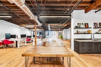 Stunning open-concept office space featuring authentic architectural details. Discover the perfect blend of modern and industrial details. This isn't your standard cubicle farm; it is a high-energy environment designed for collaboration and innovation. Features large windows to welcome natural lighting along elevated ceilings, airy atmosphere, polished hardwood floors, and a massive open space. Parking space needs to be purchased from the parking attendant; daily and monthly rates available.