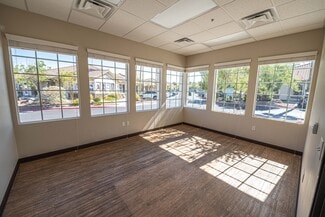 Suite 101 offers 2,152 sq. ft. of bright, move-in ready office space in a well-maintained professional building on South Pecos Road. The layout includes six private offices - four approximately 15' x 12' and two approximately 14' x 10' - along with a spacious reception area, breakroom, private restrooms, and storage closet. Large windows throughout the suite fill the space with natural light, and modern wood-style flooring enhances the clean, professional atmosphere. This suite is ideal for medical, wellness, or professional users looking for a turnkey space with excellent curb appeal and easy access to Green Valley and I-215.