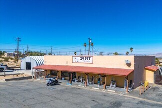 Located in the downtown core of the City of 29 Palms, this free-standing 4,200-square-foot commercial building includes paved on-site parking and an additional, adjacent commercial lot, for a total of 29,648 square feet of land (0.68 acres). Both parcels are zoned CG by the City of 29 Palms. This property is situated at the northwest corner of Two Mile Road and Palo Verde Road, and is visible from Adobe Road. The building is currently operating as a fitness center/gym. The gym equipment and business is also available. It is improved with gym flooring, overhead commercial lighting, high ceilings and men's and women's locker rooms. The main parcel also includes a quonset hut building being used as part of the fitness center. The gym equipment and business is included.