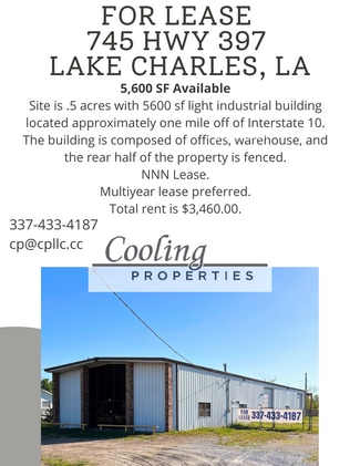5,600 SF Available Site is .5 acres with 5600 sf light industrial building located approximately one mile off of Interstate 10. The building is composed of offices, warehouse, and the rear half of the property is fenced. NNN Lease. Multiyear lease preferred. Total rent is $3,460.00.