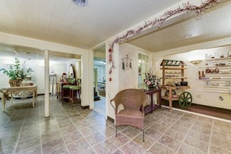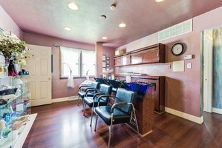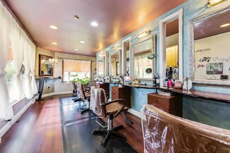 The property is zoned HC, offering a wide range of permitted uses. The interior currently operates as an elegant salon, featuring multiple private rooms ideal for various spa and wellness services. A full basement with an exterior entrance provides ample storage or additional functional space.