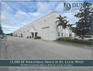 Dunn Commercial is pleased to bring to the market for lease a ±13,500 square foot industrial space located at 750 NW Enterprise Drive in Port St. Lucie, Florida. Situated within the highly sought-after St. Lucie West corporate park, the property offers a rare opportunity to secure functional, well-located industrial space in one of the region’s most supply-constrained submarkets.