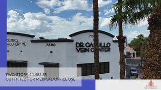 A two-story ~11,483 SF medical/office building built 2003 on ~0.75 acres along the high-visibility West Sahara corridor (89117). General commercial (C-1) zoning within the City of Las Vegas supports a mix of medical, office, and neighborhood-serving retail uses. The property features existing medical build-outs (reception, exam rooms, nurses’ station, break room) suitable for owner-user occupancy or as a leased investment after re-tenanting. Prime West Sahara / Canyon Gate area — minutes from Summerlin, US-95, and CC-215. Surrounded by medical, retail, financial, and professional office users. Strong demographics: 5-mile population nearly 484,000, projected to grow to 520,000 by 2029.