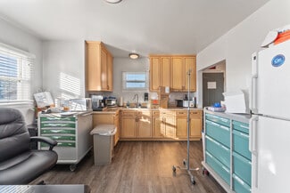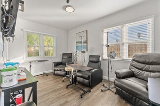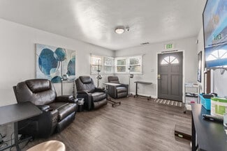 For Commercial Lease. Includes waiting room, office space, break room, and parking. Wheelchair accessible. Near high-traffic Barton Road, West of Downtown Redlands. Deposit of $3,500.