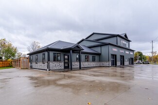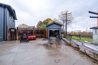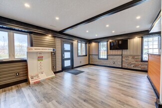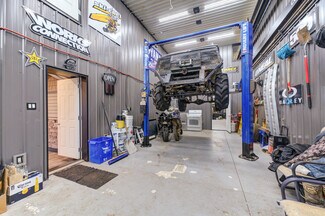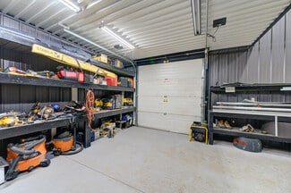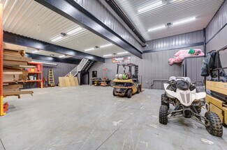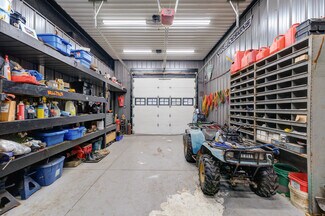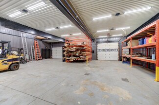 This large commercial shop with showroom has been totally renovated with the best materials and design in mind. Huge parking area with concrete surface, stamped concrete and exposed aggregate. The Steel siding and Roof (2022) is a newer heaver grade. All New aluminum soffit and facia with pot lighting. New insulation, wiring, plumbing and mechanical systems. The building is comprised of 3 main areas and 3 auxiliary areas. The first area being the Office and show room area currently set up with reception bar with granite top and tucked in behind is a small kitchen area. The Showroom floor area features a separate office area, computer area and full bathroom. Exit to rear fenced yard or through Office to the middle shop. The first bay features a high ceiling and divided in 2 with tool storage in behind, built in steel piping and power washer hookups throughout the buildings, there is also a elevated Office space at the back and roll up door for easy access. The middle shop which is totally open to the third shop is a huge area with large structural beams to carry the load of the mezzanine storage area above. 3 bay doors plus side and back exit doors. The comprised auxiliary areas are side yard with overhang, Shipping container that is roofed and sided to match the main building.