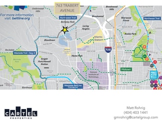 763 Trabert Avenue, a renovated 40,154 square foot, two story mixed use center, is located near the intersection of Howell Mill Road and Trabert Avenue. With future Beltline access, the center offers 50 on site surface parking spaces, 8 on street parking spaces plus an additional 21 shared spaces. Enjoying a prime location in bustling West Midtown, this project is uniquely positioned to serve the daytime population base as well as the surrounding neighborhoods. Current tenants include Bungalow Classic Home, The Daily, The Seed Factory, Kolo Collection, Le Chateau, Urban Tree Cidery, Stat Wellness, The Sentimentalist, Lamp Arts, & Le Jardin Francais.