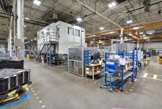 The manufacturing facility offers 19’–20’ clear heights, multiple dock and grade-level doors, heavy 34.4kV power stepping down to 2.5 MVA, sprinkler coverage, and municipal utilities. The technical center provides office and R&D space with 16’–18’ clear heights, full sprinkler coverage, strong electrical infrastructure, and ample parking.