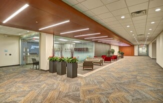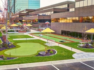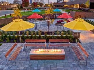 The building features a full-service deli, a state-of-the-art training facility accommodating over 100 attendees, and two conference rooms for collaborative sessions. A renovated fitness center with showers and towel service, secure after-hours access, and executive parking options enhance daily convenience. The award-winning outdoor tenant plaza—complete with seating, fire pit, grill, and games—adds a vibrant social element to the workplace.