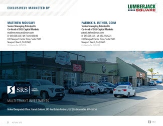 SRS Capital Markets is pleased to offer the opportunity to acquire the fee simple interest (land and building ownership) in Lumberjack Square, a 100% leased, multi-tenant retail center located in Bakersfield, California. Anchored by Body Xchange and The Firehouse, the property features a diverse and e-commerce-resistant tenant lineup. Body Xchange recently signed a 3-year extension through 2030 with an additional 3-year option to extend, underscoring its commitment to the site. The Firehouse, a prominent local entertainment hub, has operated at this location for over 20 years and recently extended its lease through 2030, with two additional 5-year options. Both leases include scheduled rental increases throughout the initial terms and at the beginning of each extension period, ensuring steady NOI growth and a hedge against inflation. All tenants have signed NNN leases, minimizing expense slippage for future ownership and ensuring low management responsibilities.