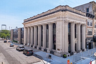 2nd floor of BMO Bank Building. Built in 1909, the New-Classical Revival structure was designed by architects Mundie and Jensen and incorporates massive fluted columns and Corinthian capitals. Indiana Bedford limestone proved over time to be an ideal stone to accommodate the generous detailing of the structure, including the roof balustrade, decorative friezes, and dentillated moldings crafted by early 20th Century stone masons.