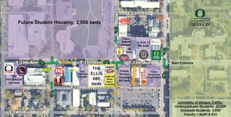 Located at 13th & Alder Street, just one block from the university’s main entrance, The Ellis sits in the heart of Eugene’s most active student retail corridor. Over 4,000 new student housing beds are delivering within one block, further enhancing demand for food, beverage, and service-oriented retail.