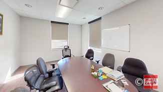 The ground floor has a reception area, 4 offices, a conference room, a break area, and two handicap bathrooms. The 2nd floor is built-out into 3 large work rooms and a conference room. (One of the work rooms is built-out into a video production studio for YouTube and internet broadcasting. It could stay or the components could be removed.)