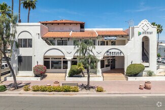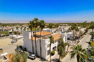 Located just one block of Old Town La Quinta this two story office building is home to Royale Real Estate and soon to be formally JNS Next. The beautiful architecture fits in well to the surrounding properties with a bright white finish and arches throughout. The area enjoys a near 360 degree view of the mountains with many restaurants and shops within walking distance.