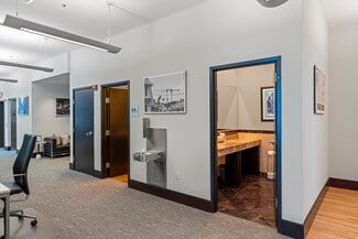 Offering 2,812 SF of beautifully designed boutique-style workspace, this office is situated in a high-traffic location, ensuring maximum visibility to both pedestrians and motorists. The space features soaring ceilings, high-end finishes, and a warm, welcoming atmosphere that creates the perfect environment for your business to thrive.